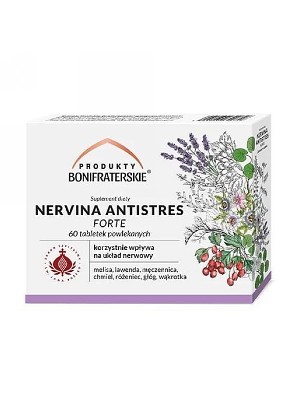 Nervina Antistres Forte (Boni Fratres), ziołowy preparat na ukojenie nerwów, 60 tabletek