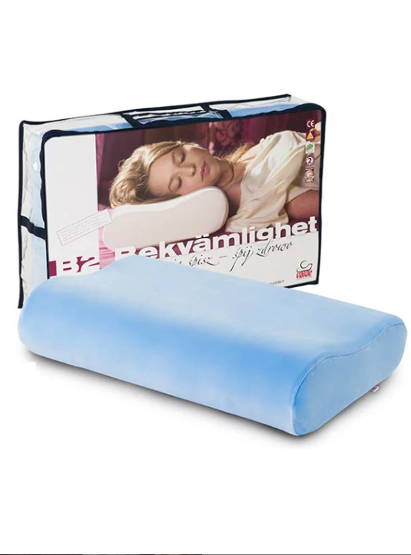 Bekvämlighet B2 jest poduszką ortopedyczną o bardzo łagodnych dwustronnych wybrzuszeniach. Wykonana jest z najwyższej jakości pianki Memory Valde dzięki czemu układa się do szyi i głowy podczas snu.